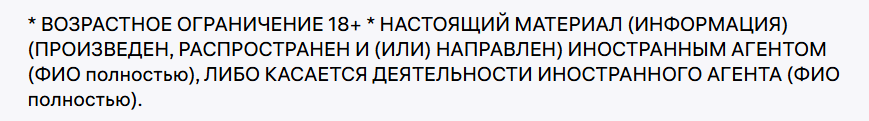 — упоминания об иноагенте в описании.
