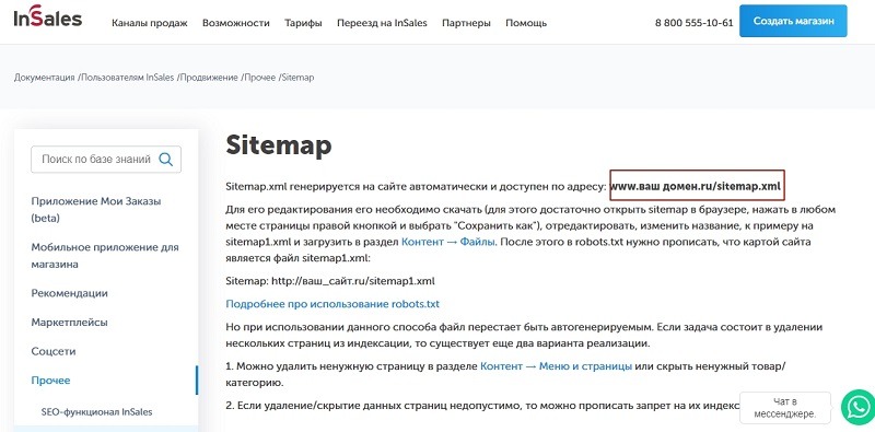 Ряд платформ предусматривает автоматическую генерацию карт без использования сторонних сервисов и ПО. К примеру, такая функция доступна для владельцев онлайн–магазинов на InSales. Готовый файл располагается по определенному адресу: