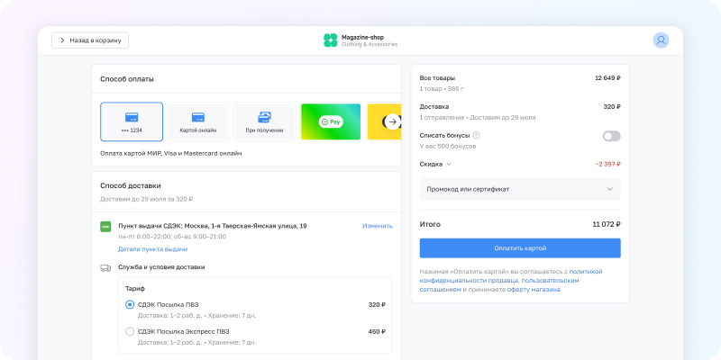 Мы запускаем новую страницу оформления заказа с современным интерфейсом и адаптивностью на всех устройствах! В новом чекауте есть бесплатная авторизация по смс, удобное управление доставками и сохранённые данные с прошлых покупок.