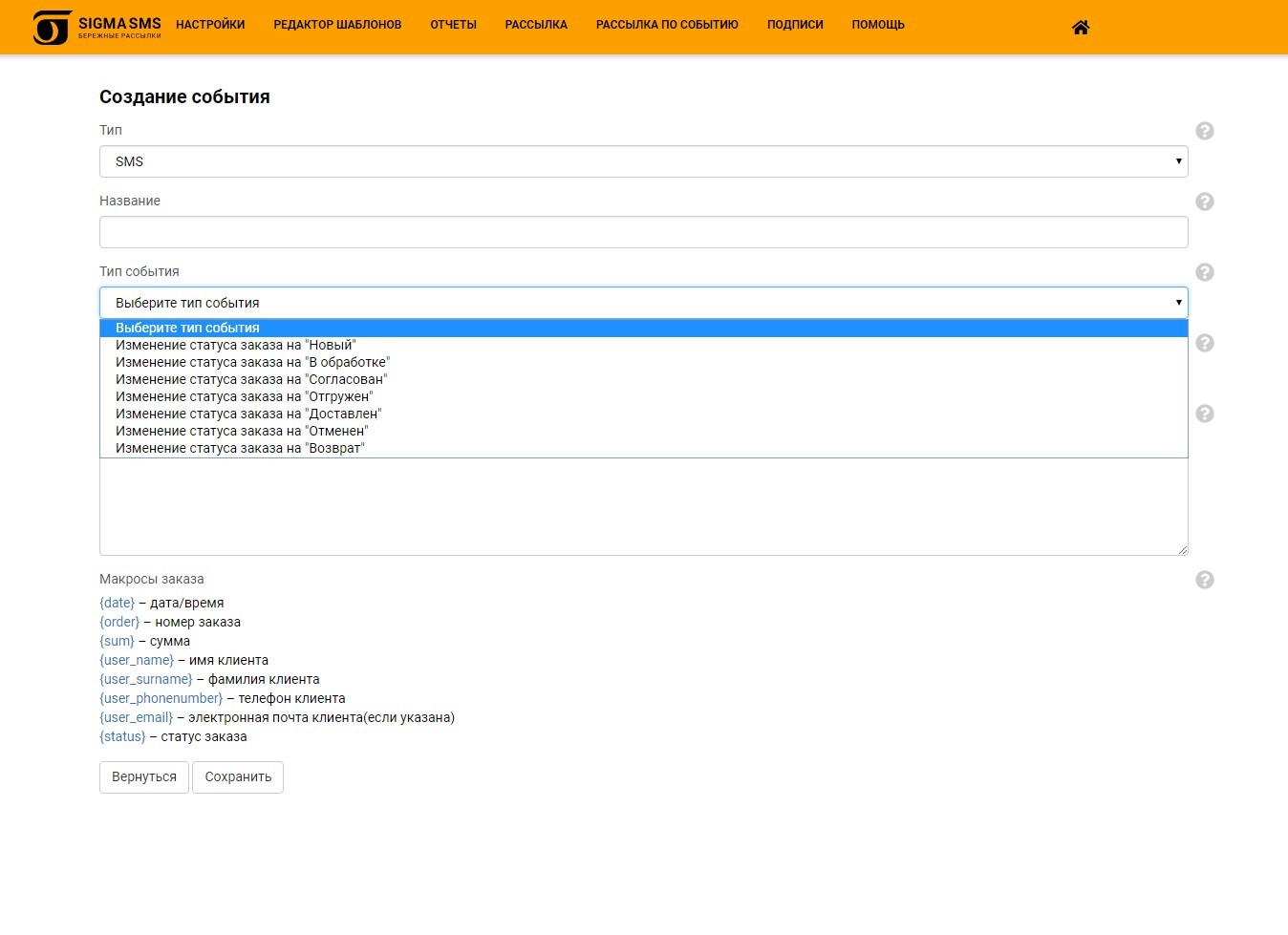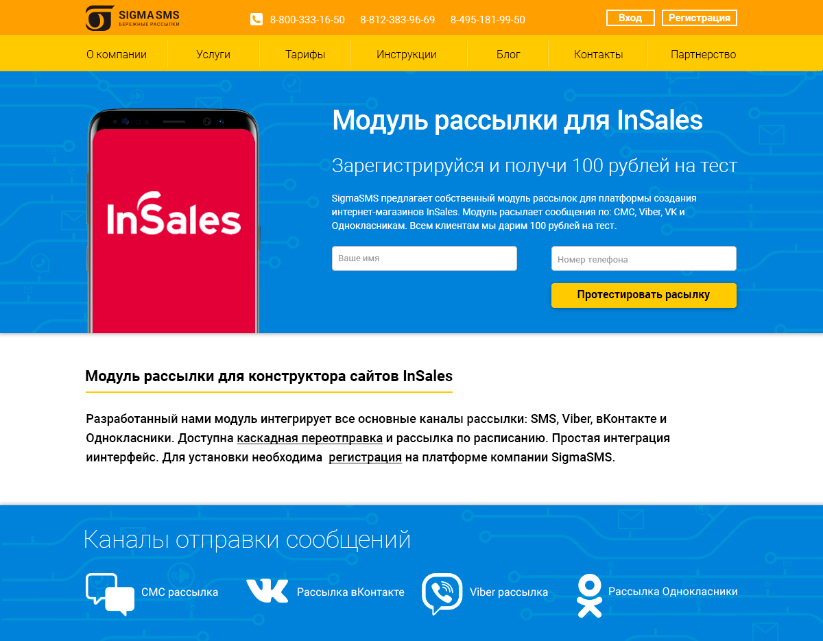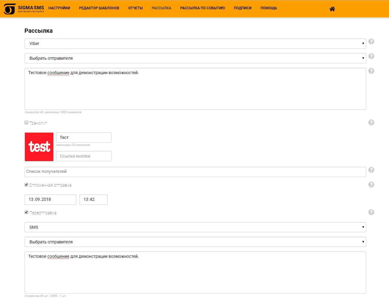 SigmaSMS – модуль мультиканальных рассылок клиентов.
