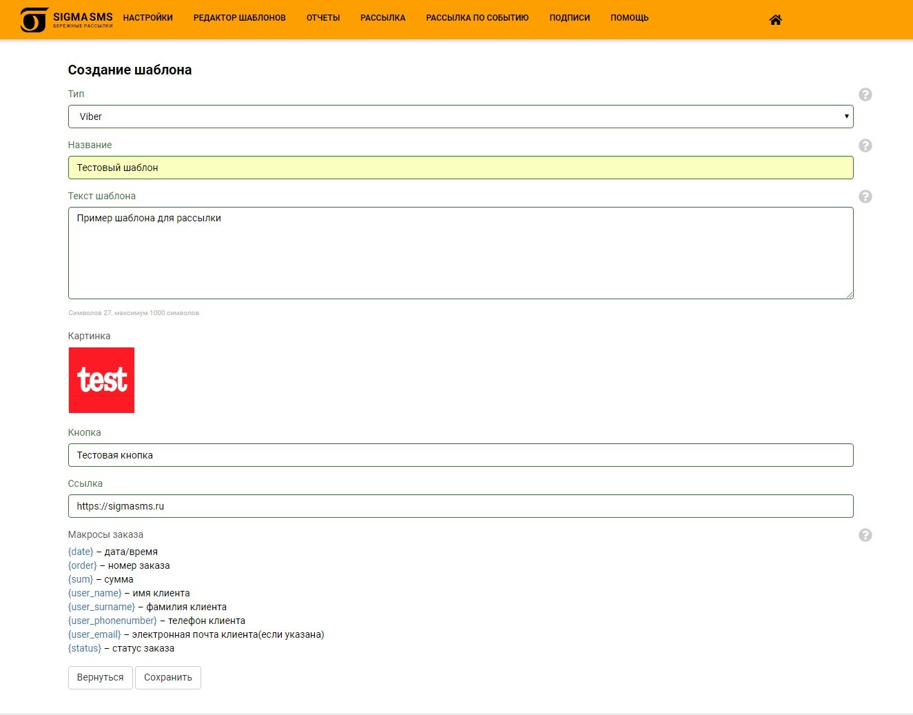 - Отправка сервисных и рекламных Viber сообщений с ссылкой, картинкой и кнопкой.