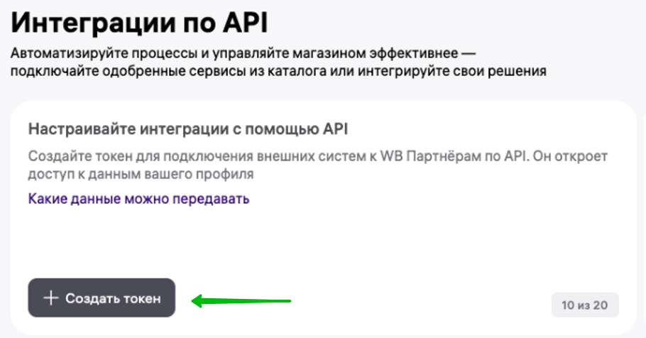 3. Перейдите в Wildberries в раздел настроек интеграций.