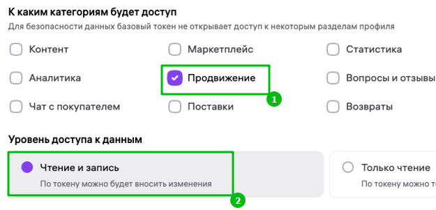 7. Добавьте доступ к категории "Продвижение" и доступ на чтение и запись: