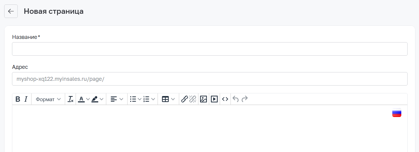 Поле "Адрес" заполнять необязательно — при создании страницы система транслитерирует название и подставит в адрес его. Но если нужно задать свой адрес, просто впишите нужное значение латиницей.