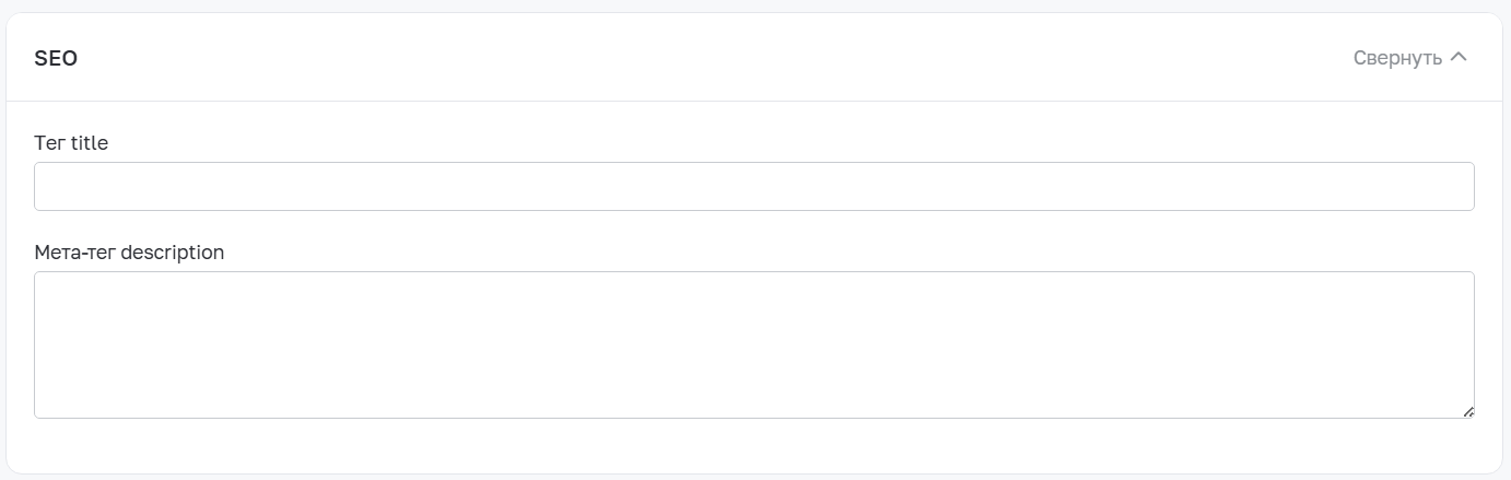 5. При необходимости можно задать SEO-параметры - теги title и description для страницы.
