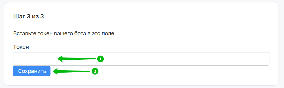 4. Первые два шага уже описаны в данной инструкции, после их выполнения в третьем шаге настройки интеграции вставьте скопированный токен:
