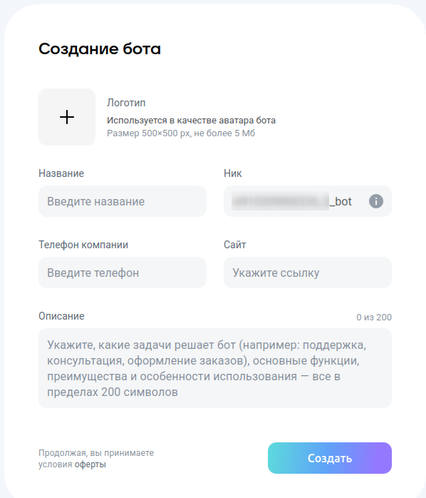 2. Заполните данные бота: