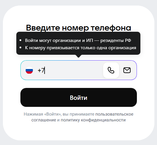2. Авторизуйтесь по номеру телефона: