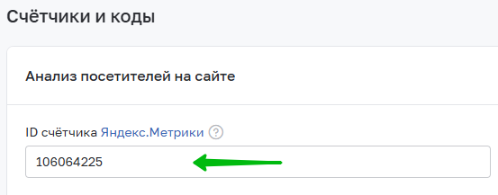 4. В панели администратора inSales зайдите в раздел Сайт → Счетчики и коды, найдите поле "ID счётчика Яндекс.Метрики", вставьте в него скопированное число: