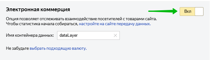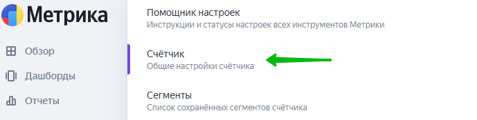 4. Активируйте сбор событий в разделе Сайт → Счетчики и коды: