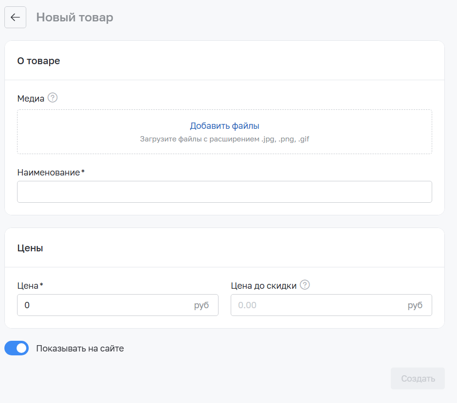 Настройки товаров в сайт-визитке аналогичны настройкам в базовом сайте. Рекомендуем обратиться за более подробным описанием к основной документации. Ссылки на важные статьи представлены в следующем разделе инструкции.