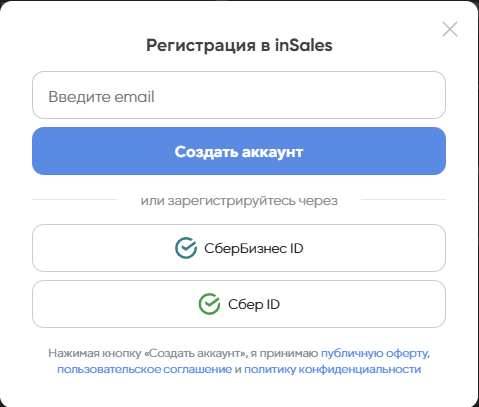 Для регистрации укажите email или зарегистрируйтесь с помощью СберБизнесID / СберID.