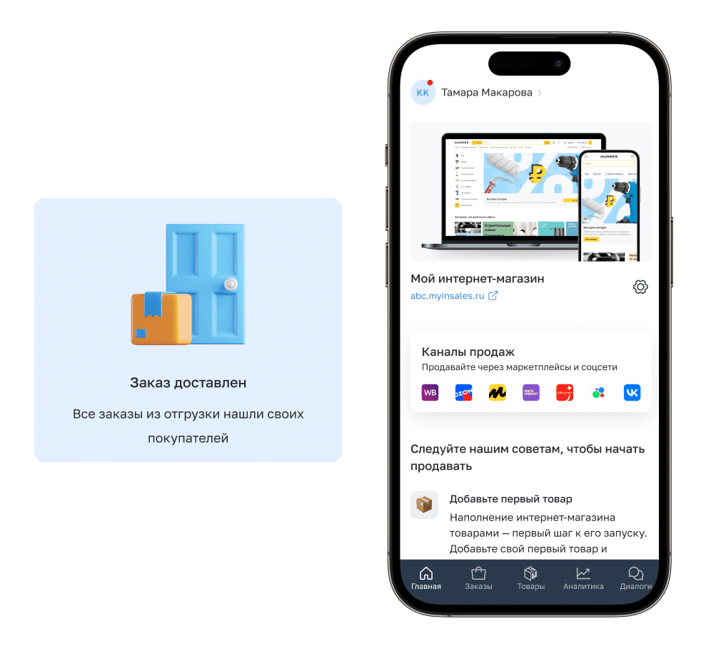 Создайте интернет-магазин, синхронизируйте товары и заказы на всех маркетплейсах, ведите диалоги с клиентами в одном окне