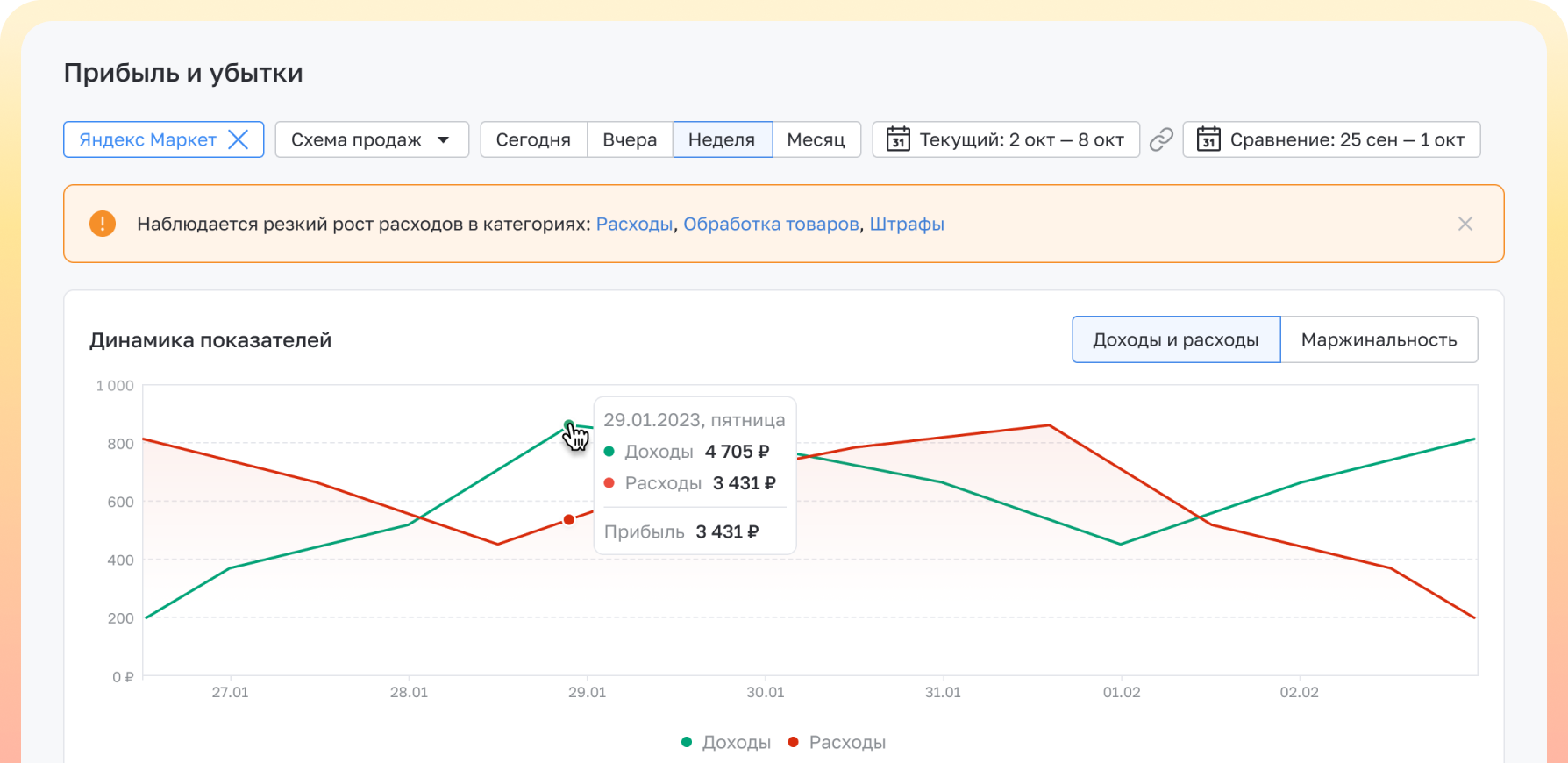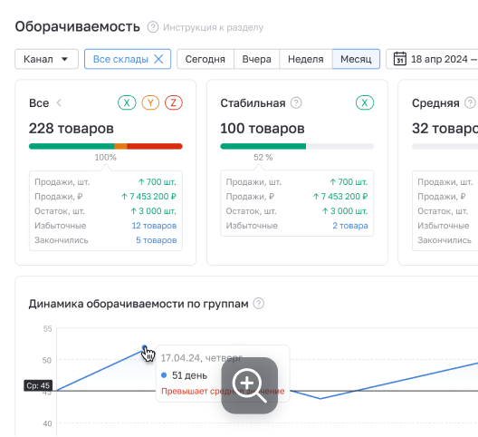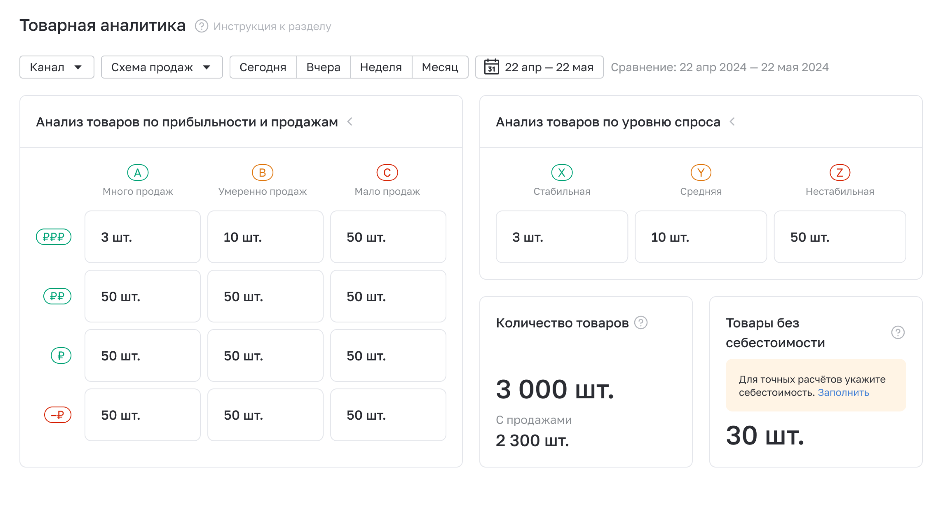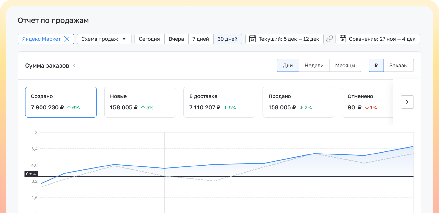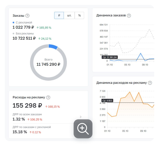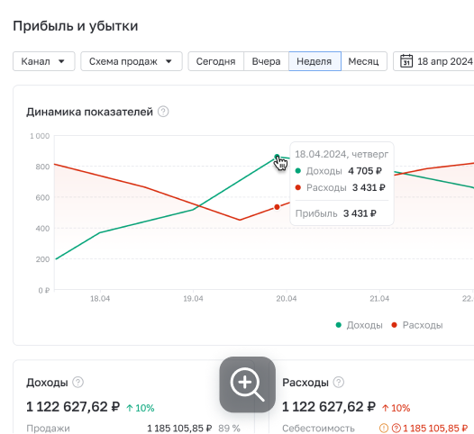 inSales использует собственные технологии для анализа данных и показателей, поэтому ваши отчеты более точные, детальные и информативные, чем статистика на самом маркетплейсе.