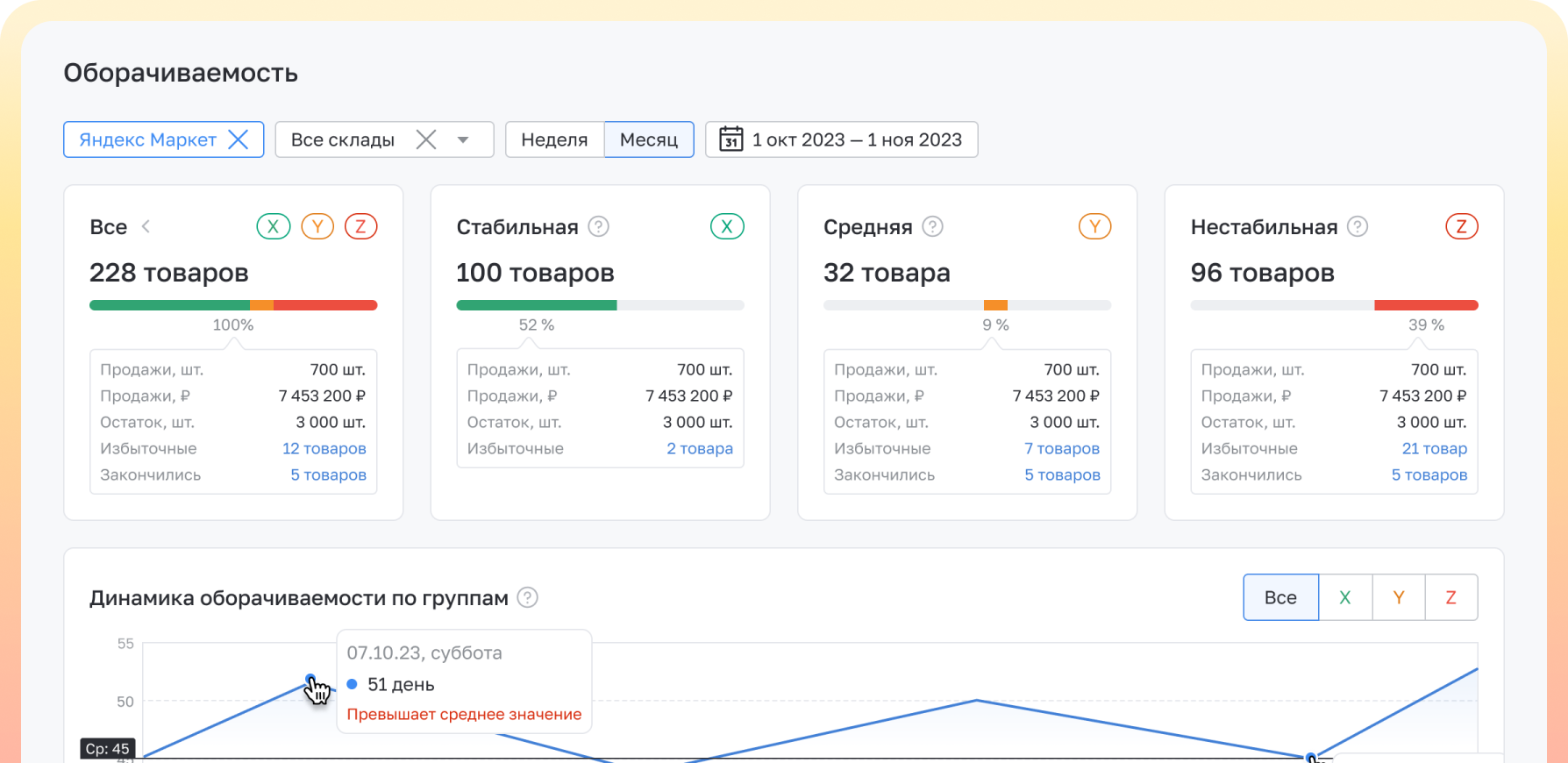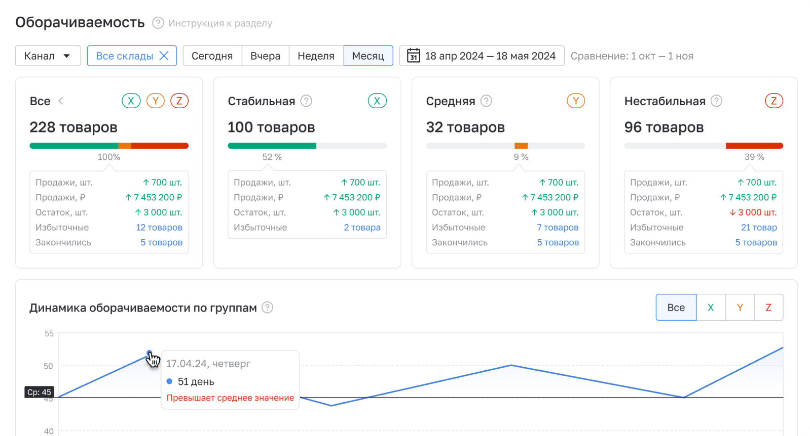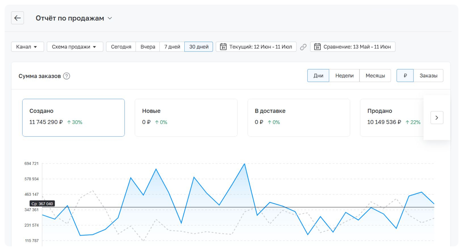 inSales использует собственные технологии для анализа данных и показателей, поэтому ваши отчеты более точные, детальные и информативные, чем статистика на самом маркетплейсе.