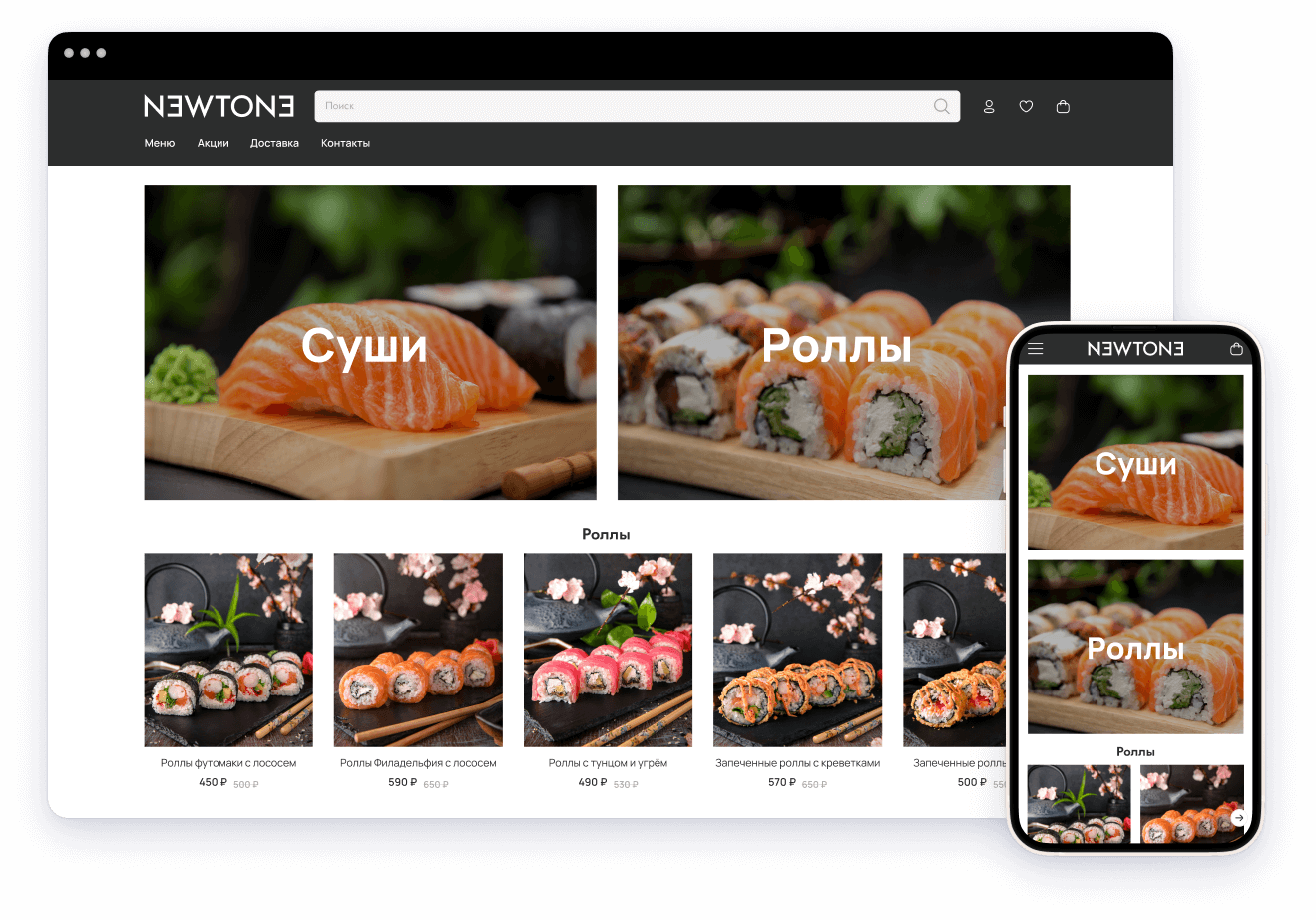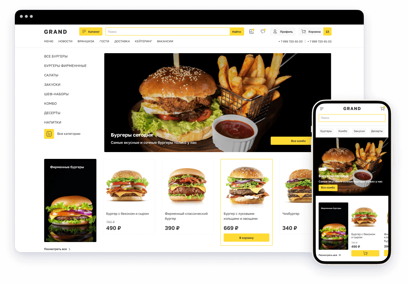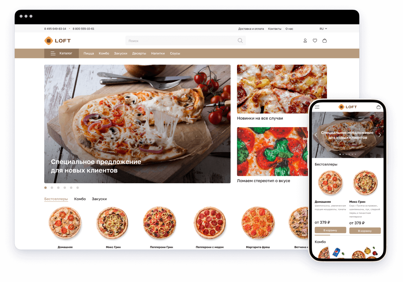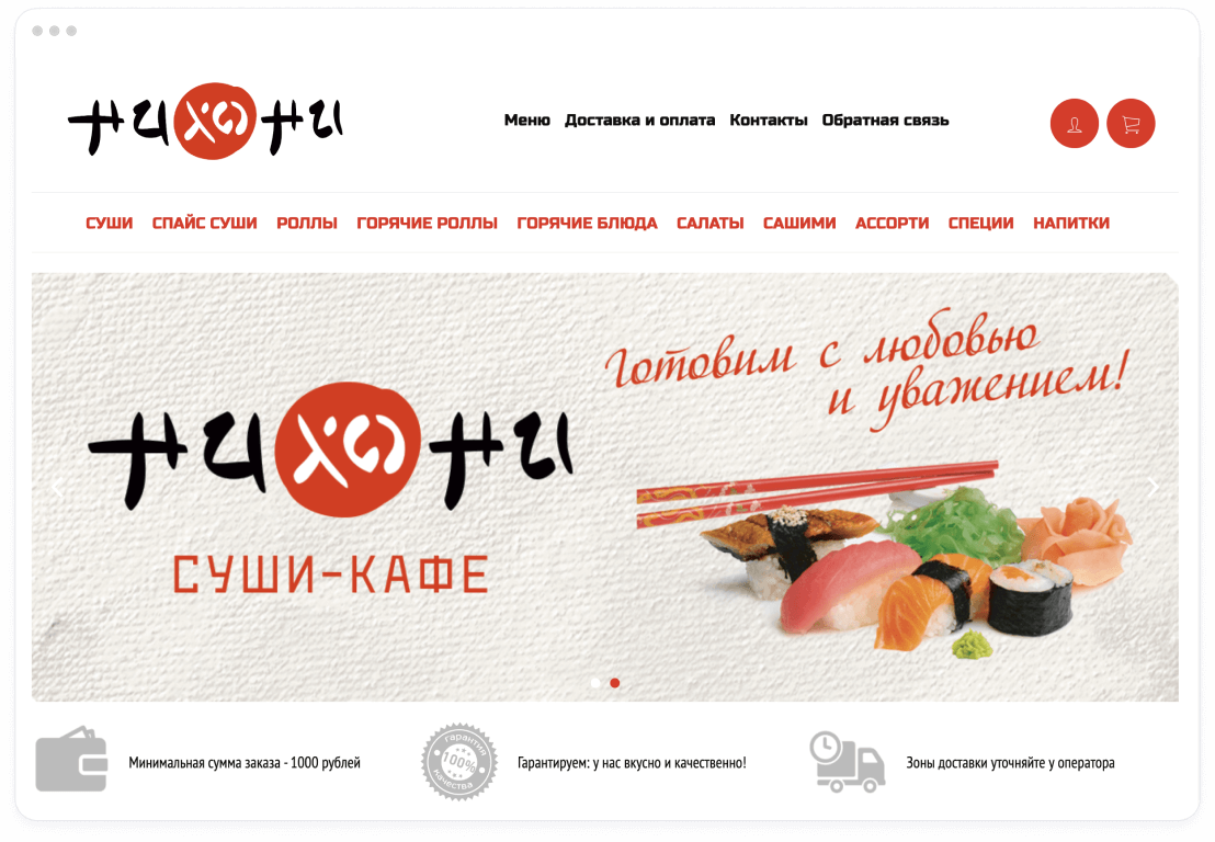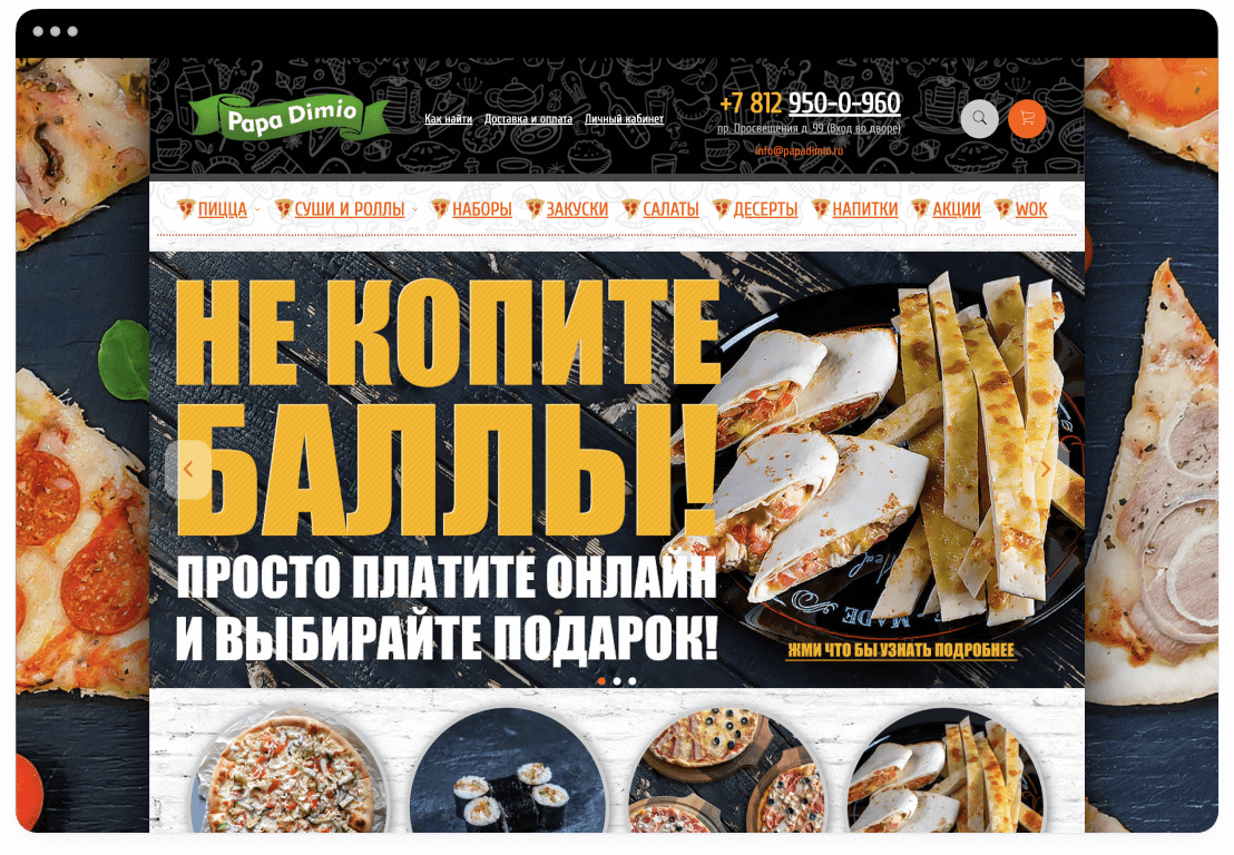 приложения, а адаптивность страницы позволит клиенту без труда сделать заказ с любого устройства – с