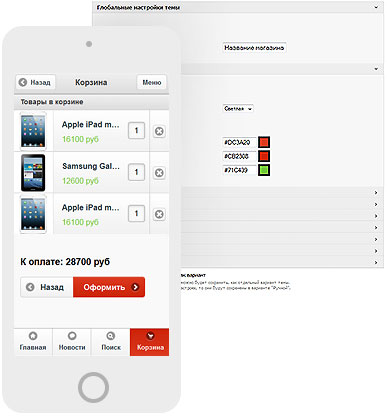 Фактически у Вашего магазина будет 2 витрины. На большом экране клиенты будут видеть основную витрину с красивым, полнофункциональным дизайном, а на экране смартфона - мобильную версию магазина.