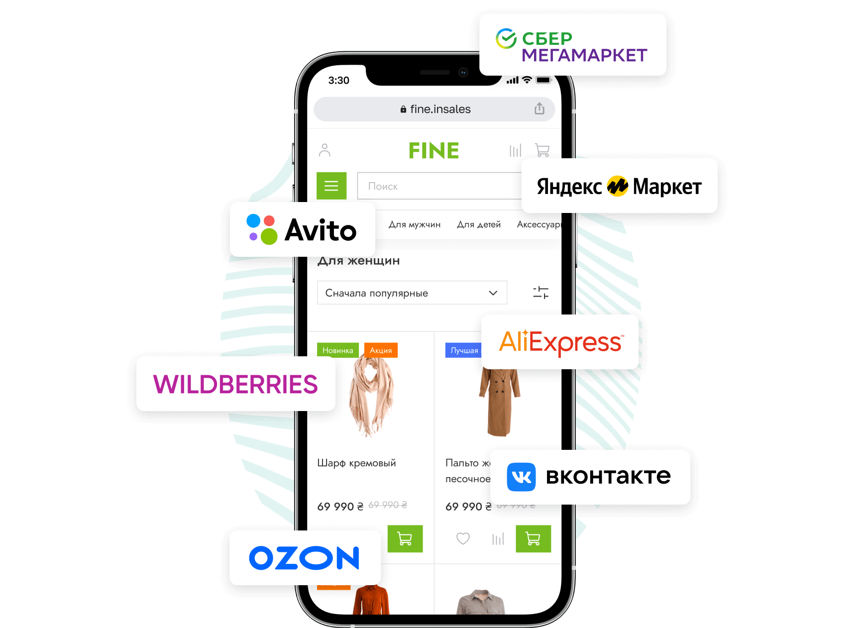 Компания предоставляет единый инструмент выхода во все каналы интернет-продаж: сайт, маркетплейсы, социальные сети и мессенджеры.