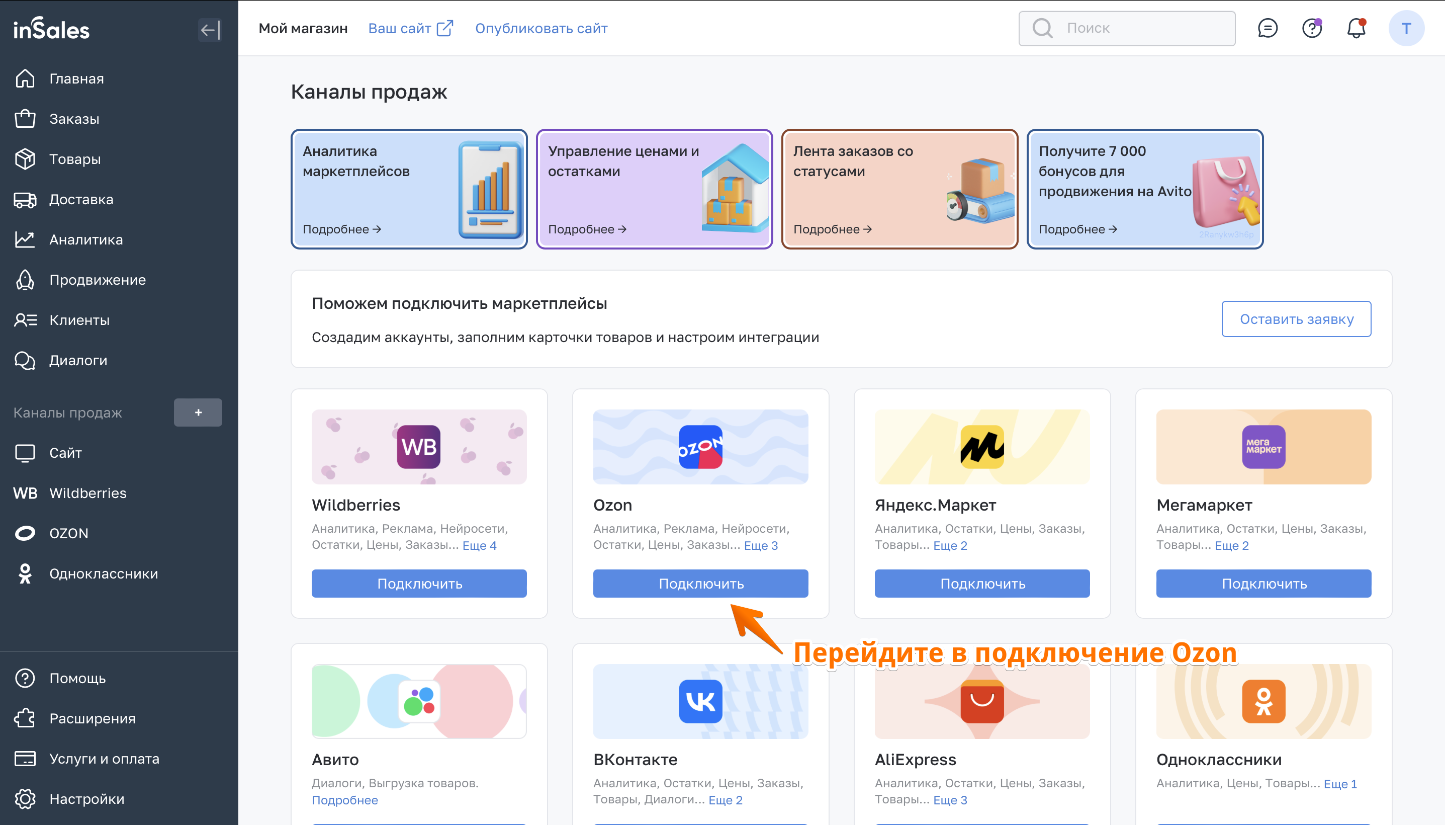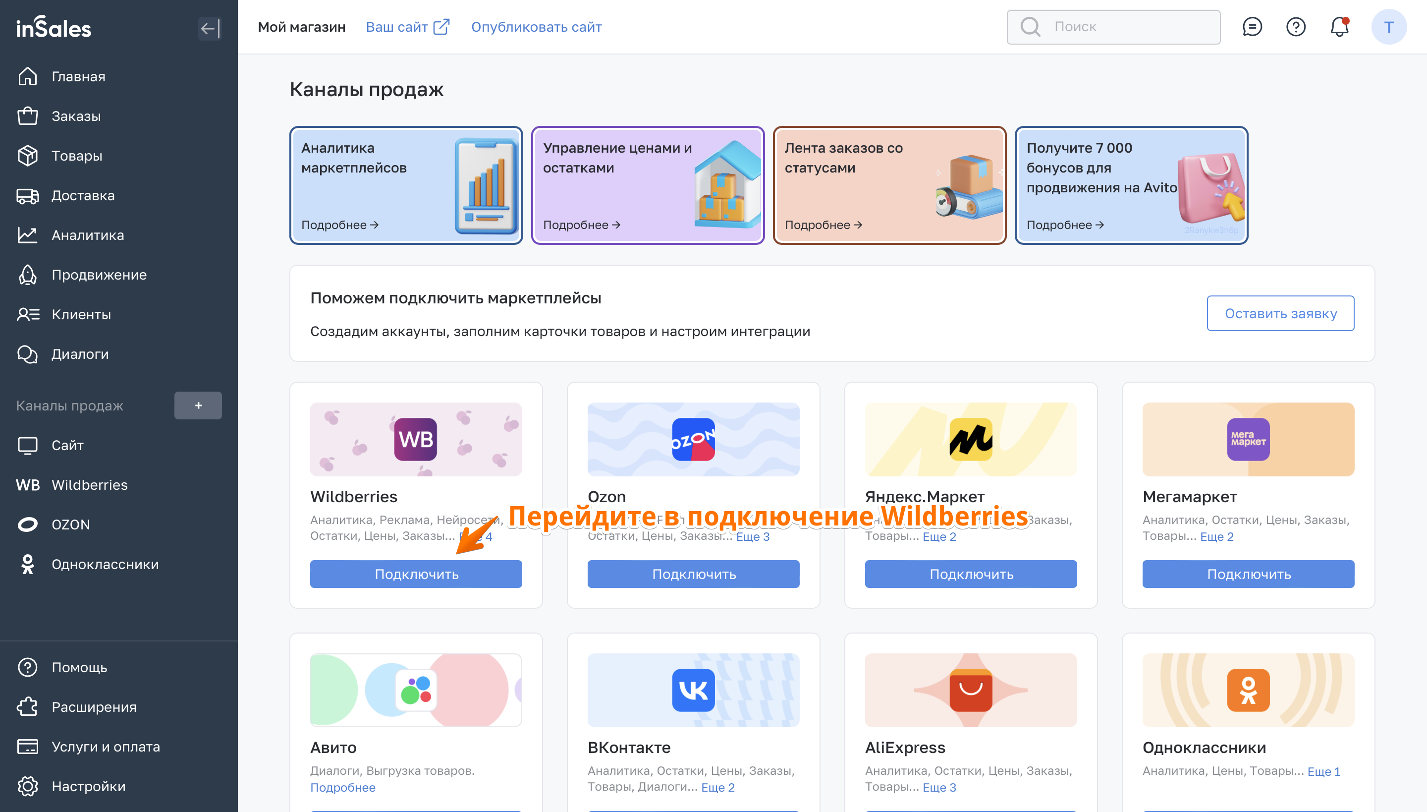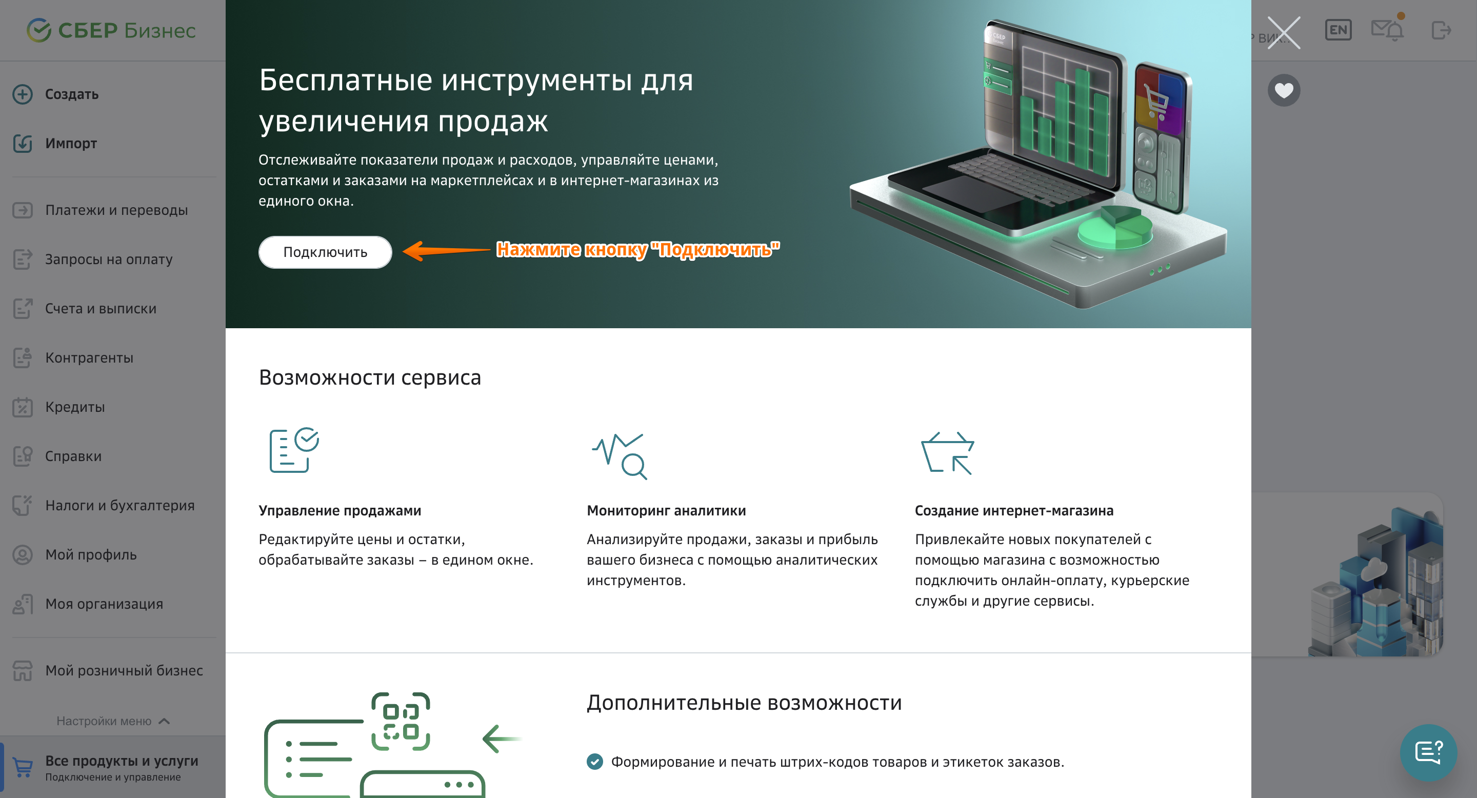 Выберите продукт, по подключению которого нужно пройти тренировку в подключении.