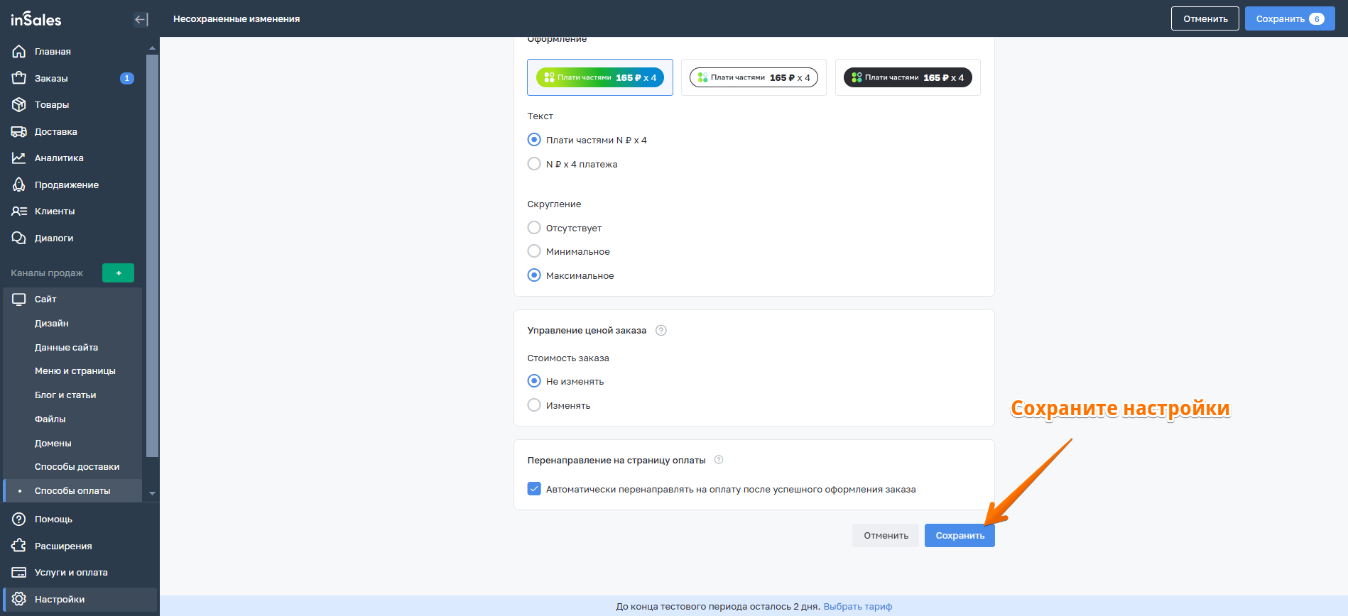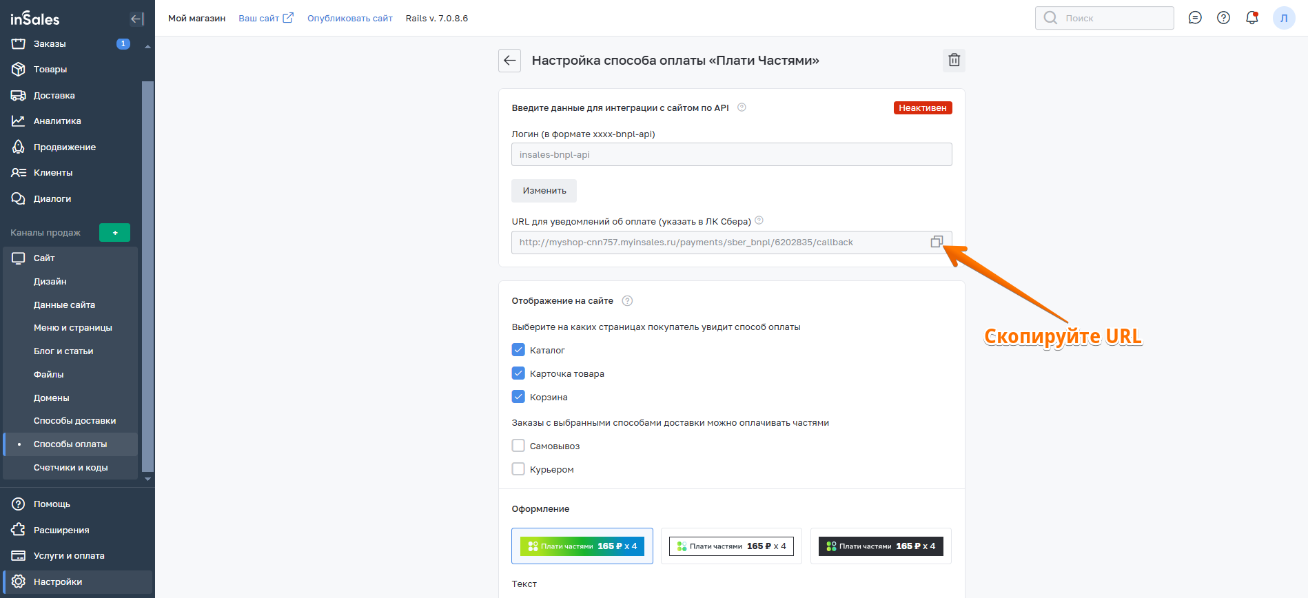 Плати частямиinSales Доставка
